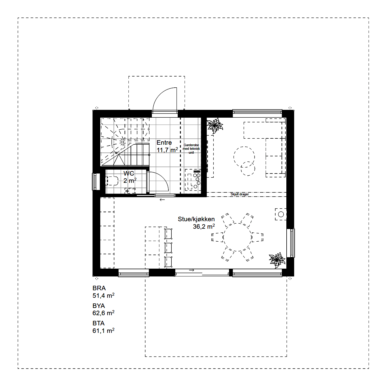 Buildable AS kan kontaktes for tilpasninger og plassering av boligen på tomten. Vi kan bistå med komplette byggemeldingstegninger. Kontakt Buildable for pris.