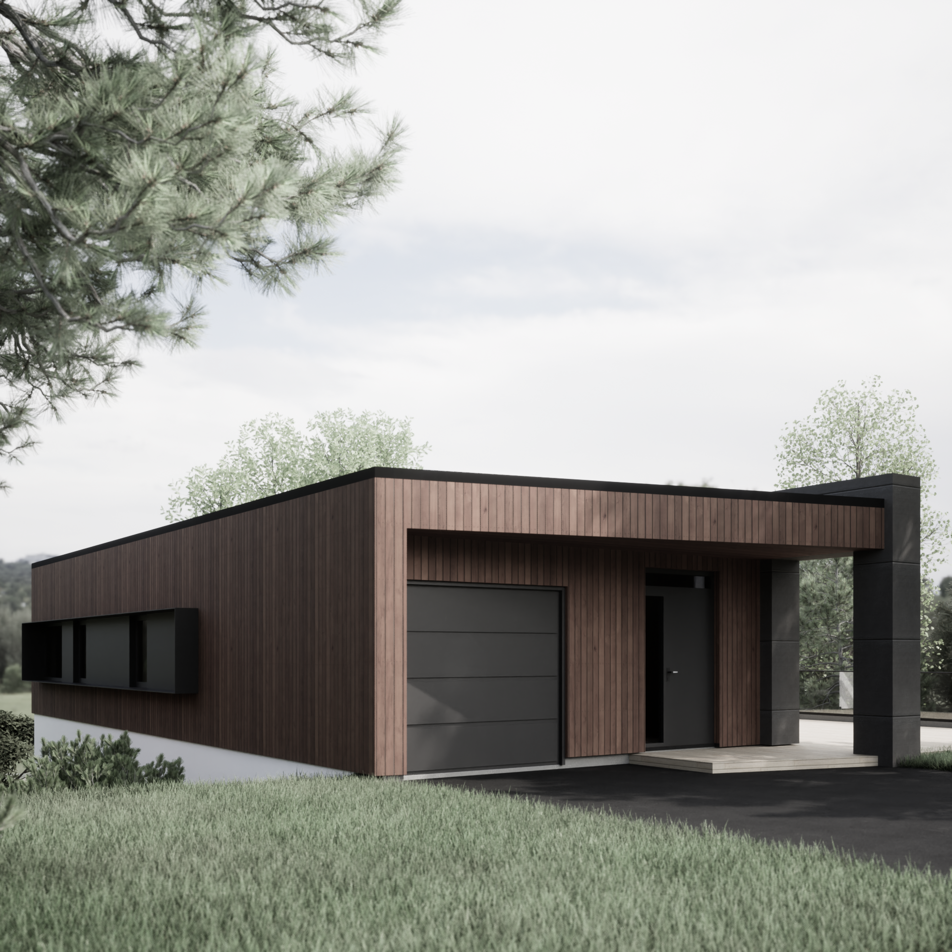 B2 er en moderne enebolig, med en praktisk og fleksibel planløsning. Inngangspartiet kan enkelt flyttes til underetasjen, dersom adkomsten er nede på tomten.