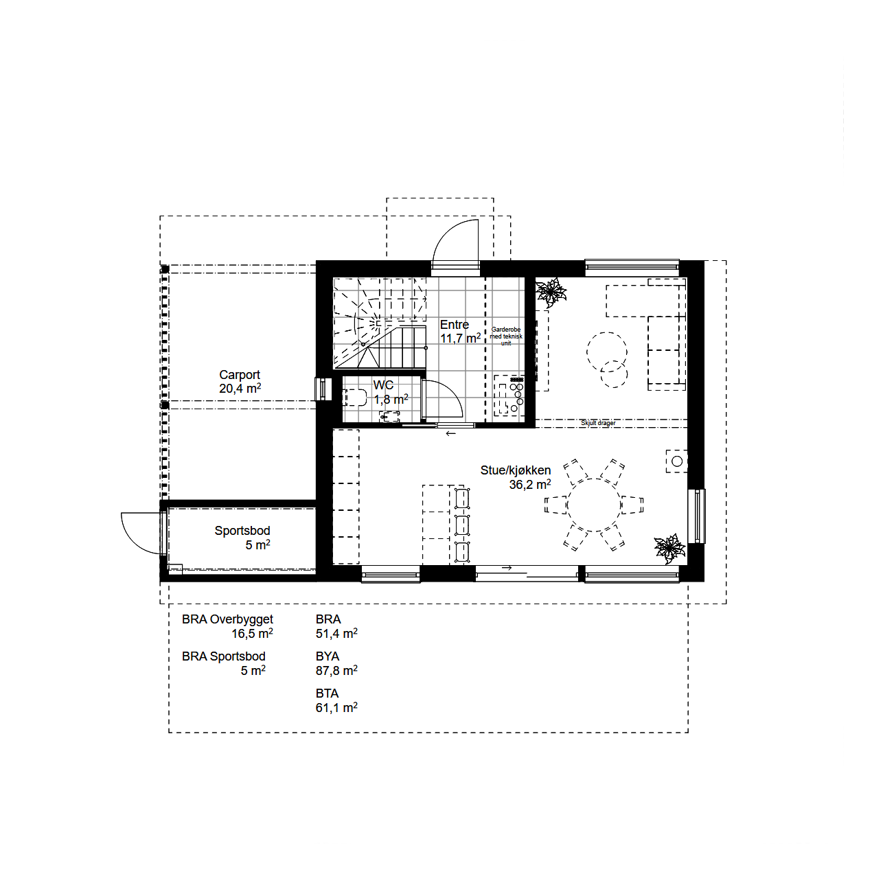 Buildable AS kan kontaktes for tilpasninger og plassering av boligen på tomten. Vi kan bistå med komplette byggemeldingstegninger. Kontakt Buildable for pris.