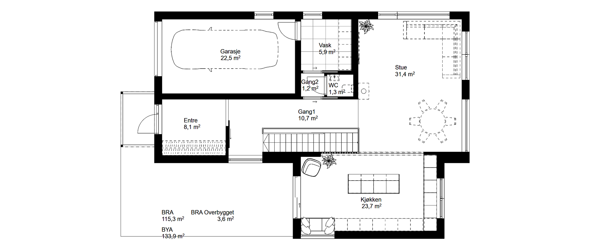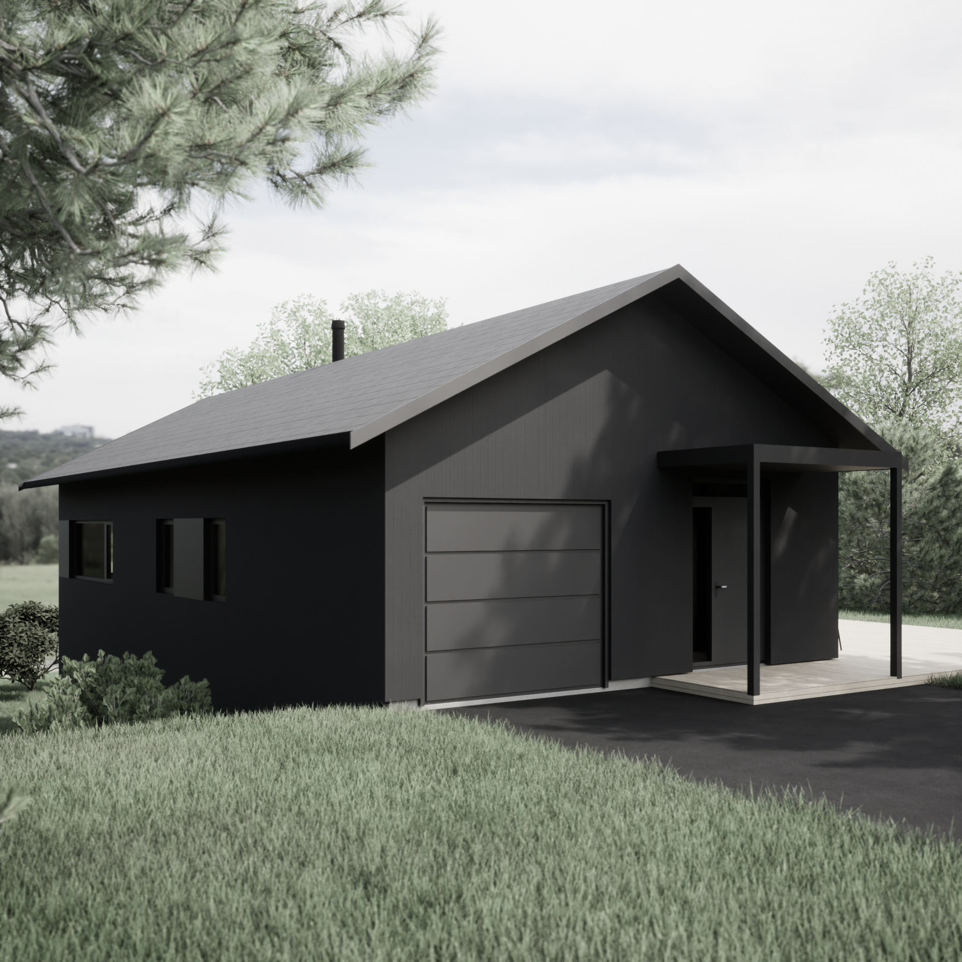 B1 er en moderne enebolig, med en praktisk og fleksibel planløsning. Inngangspartiet kan enkelt flyttes til underetasjen, dersom adkomsten er nede på tomten.